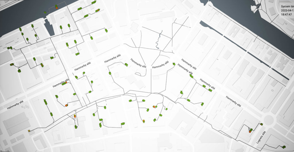 Se nedan för en karta över vår sopsug och våra nedkast. Nedkasten är inte alltid exakt där de ligger på kartan men det borde ge en bra uppfattning ungefär hur systemet är sammankopplat.